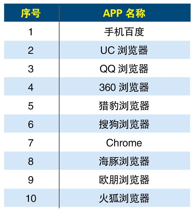 在移动端,百度搜索依然是国内用户的首选,而神马搜索、好搜、搜狗、Bing等在体量上还有一定的差距。不过,这里我们只关心搜索场景下用户使用的App,毫无疑问,人们在搜索时第一时间还是想到浏览器。