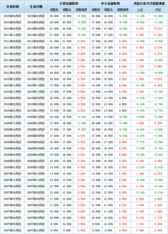 东方财富网讯中国人民银行决定,自2015年4月20日起下调各类存款类金融机构人民币存款准备金率1个百分点。在此基础上,为进一步增强金融机构支持结构调整的能力,加大对小微企业、“三农”以及重大水利工程建设等的支持力度,自4月20日起对农信社、村镇银行等农村金融机构额外降低人民币存款准备金率1个百分点,并统一下调农村合作银行存款准备金率至农信社水平;对中国农业发展银行额外降低人民币存款准备金率2个百分点;对符合审慎经营要求且“三农”或小微企业贷款达到一定比例的国有银行和股份制商业银行可执行较同类机构法定水平低0.5个百分点的存款准备金率。