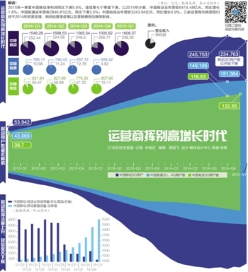 至于中国联通,尽管其尚未披露一季度财务数据,但其今年1月的移动用户增长仅为8.3万户,2月、3月甚至分别净下滑282.1万户、160.9万户。中国电信的一季度数据尚未披露,不过其在2014年财年的营收和利润增长均未超过1%。