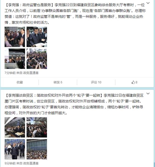 李克强到福建自贸区象屿综合服务大厅考察时,一位工作人员介绍,以前是“办事群众围着各部门跑”,现在是“各部门围着办事群众跑”。总理称赞道:这就对了!政府监管不是单纯的“管”,而是一种服务,服务得好,就能调动企业热情,激发市场和社会的活力。