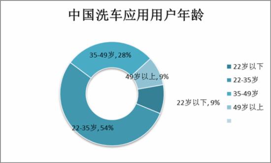 汽车在中国已经属于大众消费品,随着汽车价格的连年下降,拥有第一辆汽车人群的年龄加速年轻化。所以,洗车应用的用户群体中22-35岁人群普及力度最高,占比达到54%;35-49岁人群次之,占比为28%;22岁以下人群占比为9%;49岁以上人群占比为9%。由于驾照的考取年龄限制为18岁以上,所以22岁以下的群体占比较少。