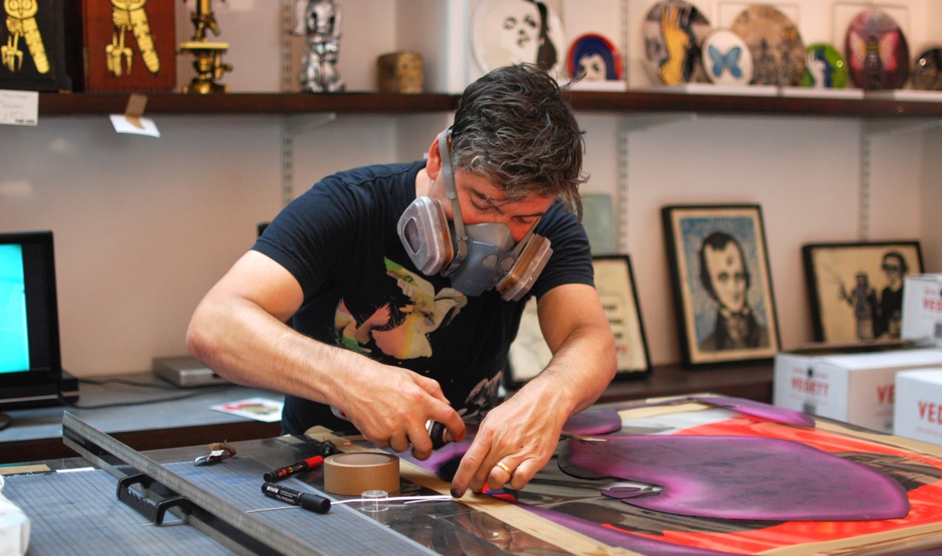 工作中的‘纯粹邪恶’,在他位于东伦敦的画廊内