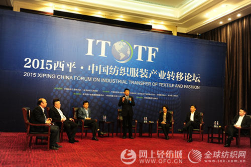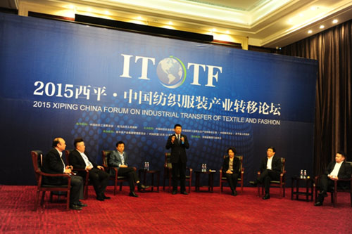 4月25日,由中国纺织企业家联合会、中国纺织工业联合会产业转移办公室、中国服装协会、西平县人民政府联合主办的“2015西平·中国纺织服装产业转移论坛”在河南省西平县举行,与会专家就西平如何承接中国纺织服装产业转移展开了深入探讨。