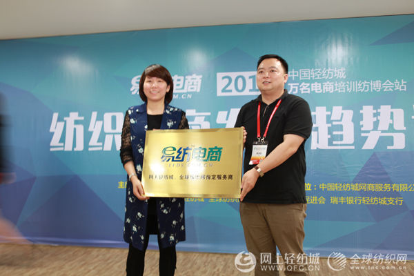 易纺电商通过“接牌授牌”仪式与网上轻纺城、全球纺织网达成战略合作,成为指定服务商