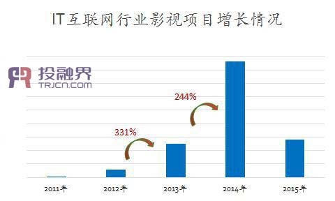 在投融界数据平台上,影视项目目前仍以传统的文化传媒类型为主,但与互联网有关的项目数量正在快速上升,仅2015年第一季度互联网行业影视项目数就已超过了2013年全年的总和。