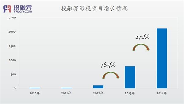 据投融界数据统计显示,平台上的影视项目在2012年仅为100多个,到了2014年已增长到了2000多个,增长了近20倍。