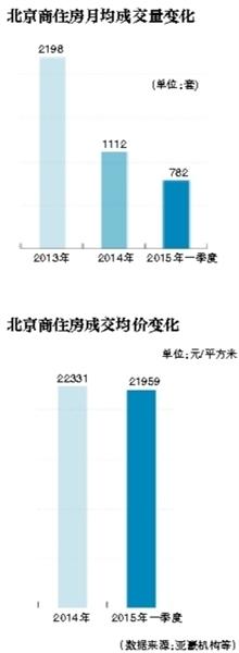 受成交量影响,成交价格也有小幅回落。据亚豪机构统计显示,今年一季度,北京商住产品的成交均价为21959元/平方米,相比2014年的22331元/平方米,小幅下降了2%。