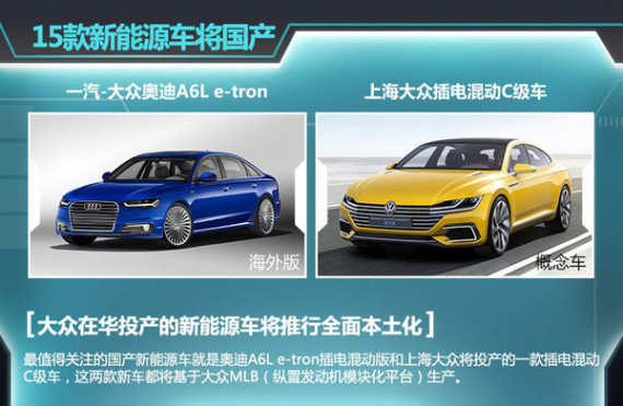 关于大众即将在华实现本土化生产的15新能源车型,其中最值得关注的就是奥迪A6Le-tron插电混动版和上海大众将投产的一款插电混动C级车,这两款新车都将基于大众MLB(纵置发动机模块化平台)生产。提到新能源车在华的本地化,大众集团所推行的将是全面的本地化,也就是新能源车所有的零部件和模块,都将在中国实现本地化生产。关于国产化率,海兹曼博士强调:“核心的零部件,包括我们的电池系统将来也会在中国开发和生产。”