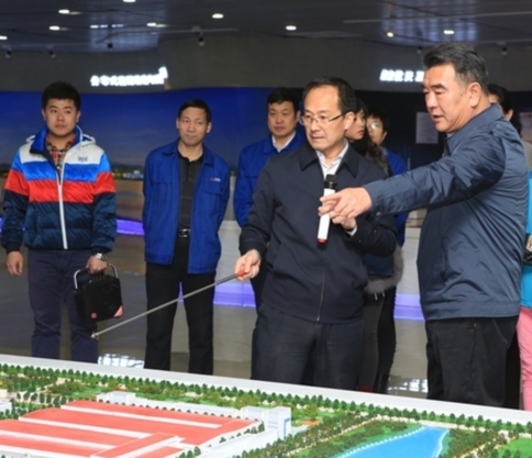 中央人民广播电台台长王求(右一)采访兰州兰石集团“出城入园”搬迁改造产业升级项目。