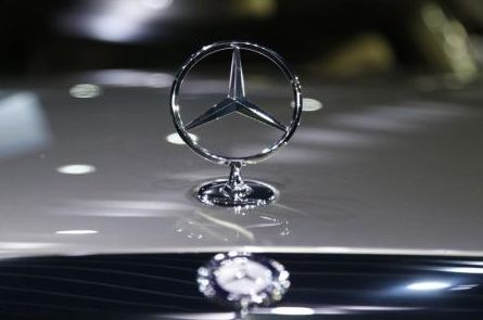 图中为梅赛德斯-迈巴赫S级轿车引擎盖标识。REUTERS/Lucy Nicholson