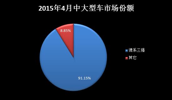 今年以来,在中大型车市场上,“德系三强”的市场份额又提升了四个百分点还多,达到令对手几乎绝望的91.15%。