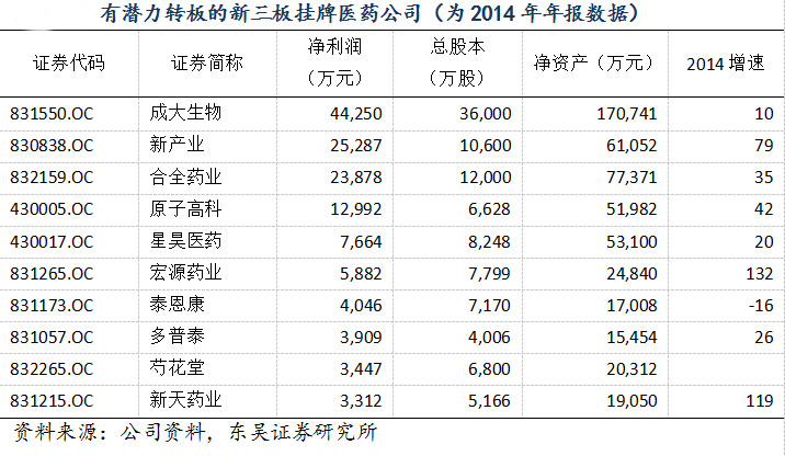 新三板医药上市公司挂牌及做市情况:截止2015年5月12日,新三板挂牌公司共有2395家,其中按万德一级行业划分的医疗保健行业挂牌家数134家,占比5.59%,排名各行业第五。新三板做市股票数量达到308只,其中医药保健行业做市个股24只,排名各行业第四。