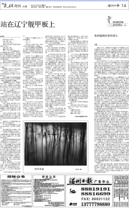 小切口看立意,方寸间见乾坤。3篇地市报作品反映了社会生活的不同方面,能让读者触摸到时代的脉搏。报告文学《懒汉治村》关注新时代村官的新形象,勾画出有激情、讲公道、懂科学、善行事的人物;《站在辽宁舰甲板上》关注中国第一艘航空母舰,展开中国海军的“航母梦”;《你可记得爷爷的名字?》聚焦2014年颇受关注的寻找和重建家风话题,它们都有着重大的新闻价值,引人入胜。