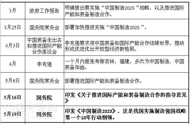 《中国制造2025》、推进国际产能和装备制造合作指导意见发布