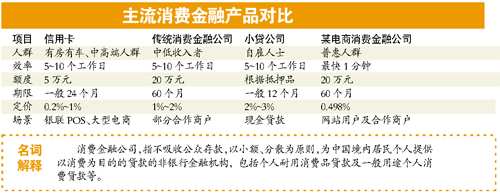 对于和银行消费信贷的差异化竞争,苏宁消费金融公司董事长王琪生解释说,银行通常需要有抵押或者其他担保,消费金融公司最大的特点则是小额、分散、无担保,所以主要针对中低收入阶层,有可能在银行申请不到信用卡或者即使申请到额度也不太高的群体。