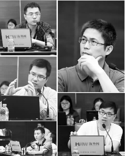 首届海外华文新媒体高峰论坛暨人民日报海外版创刊三十周年座谈会技术分论坛与会人员在发言。
