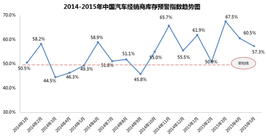 中国汽车流通协会副秘书长郎学红介绍,进入2015年以来,除了1月份的预警指数没有超过50%,基本都处于高位,这意味着需求不足、库存增加。