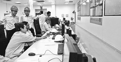 普特拉姆燃煤电站是斯里兰卡历史上第一个燃煤电站,承建和技术输出方是中国机械设备工程股份有限公司。图为日前中斯工程技术人员在电站控制室进行业务交流。新华社发