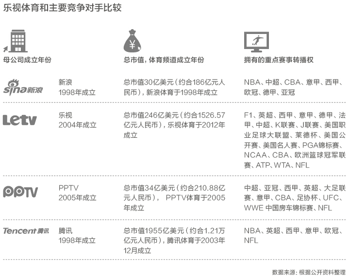 作为市场的后来者,乐视体育如果希望建立竞争门槛,显然需要在版权的购买上下更大的赌注。此前,新浪体育、PPTV、腾讯等已经在这个领域中经营多年。