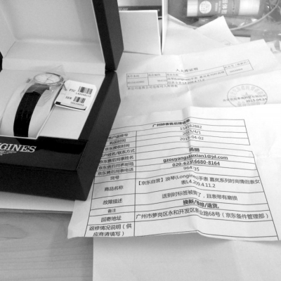 近日,顾客夏女士在京东自营店购买了一块价值5899元的浪琴手表,打开包装竟发现印有翻修信息的单据。对此,京东回应称,该表曾被其他顾客退货,经供应商检查并无磨损和维修记录,系新品才重新销售,留单据系员工疏忽。