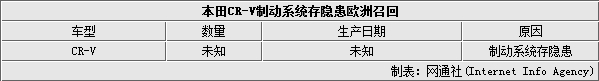 本田CR-V制动隐患欧洲召回