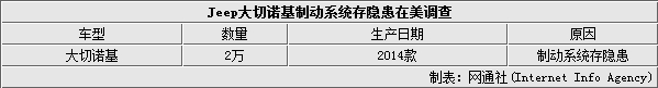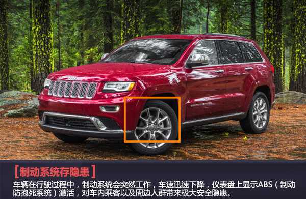 由于制动系统存在隐患,美国公路交通安全管理局(NHTSA)将对全美地区的部分2014款Jeep大切诺基展开调查,共涉及约2万辆。本次调查车型为2014款Jeep大切诺基,生产日期未知,共涉及2万辆,目前已收到9位消费者的投诉。