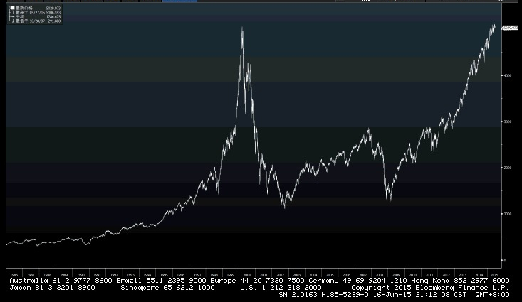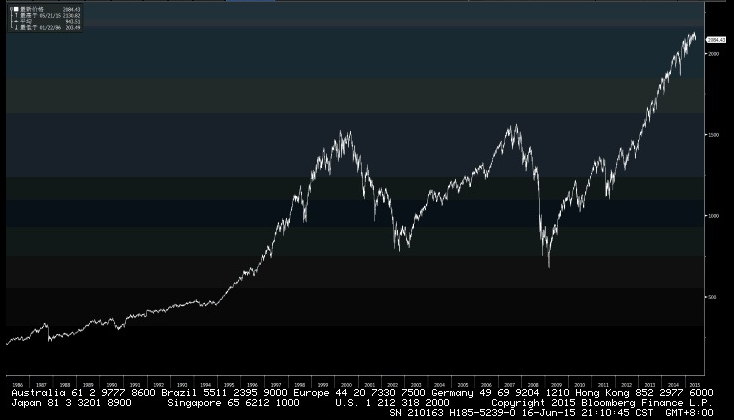(数据源于彭博:标普500指数处于几十年来最高点)
