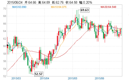 8月布兰特原油期货合约收升1.11美元,或1.8%,报每桶64.45美元。