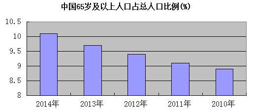 中国是人口大国,也是老年人口大国。根据国家统计局数据,2014年末,全国60周岁及以上的人口为21242万人,占总人口的15.5%。目前,我国老年人口正以每年1000万的速度增加,预计到2050年,每3到4个中国人之间就将有一位是老年人。