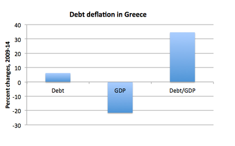 克鲁格曼和其他一些欧洲顶尖的在欧元区经济方面的经济学人都将问题症结指向三驾马车——国际货币基金组织(IMF)、欧盟和欧央行在希腊问题上紧缩政策的失败。