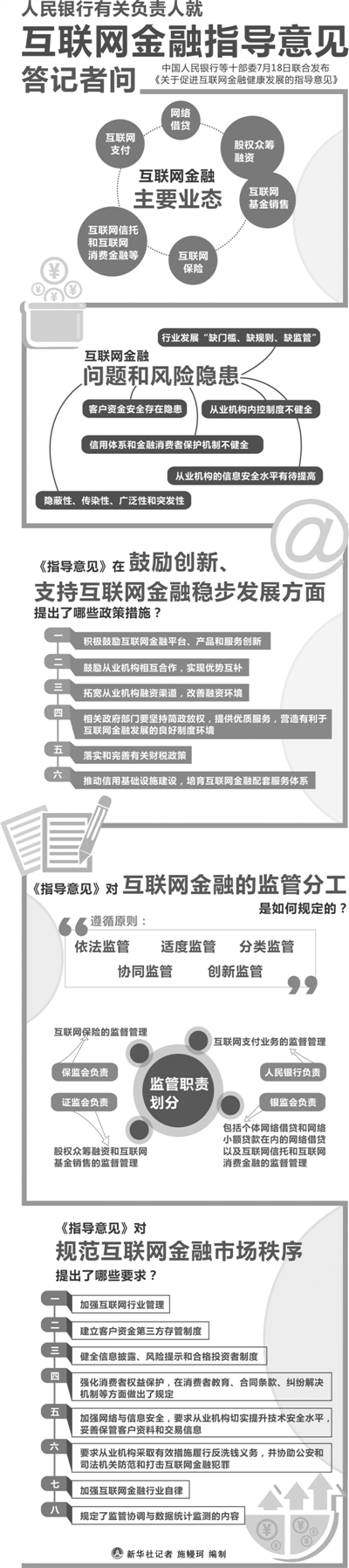 7月18日,《关于促进互联网金融健康发展的指导意见》正式对外发布。中国人民银行有关负责人就《指导意见》相关问题进行了解读。