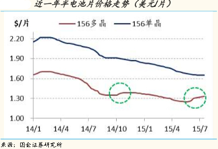 值得注意的是,其中最直接受益国内装机旺季的多晶硅片/电池产品线价格最先开始反弹(而去年从10月才开始涨价),也从侧面印证了今年国内装机旺季的提前到来。
