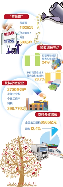 “需要注意的是,‘营改增’不仅对纳入试点的行业起到减税效果,还惠及原来就实施增值税的行业,因为随着‘营改增’的推进,这些行业新增了抵扣项目,税负也随之减少,有的行业减税幅度甚至超过新纳入试点的行业。”张斌说。