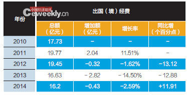 另一个值得注意的现象是,2011年、2012年连续两年出国经费不降反增。统计显示,2010年的出国经费是17.73亿元,2011年为19.77亿元,2012年为19.45亿元。