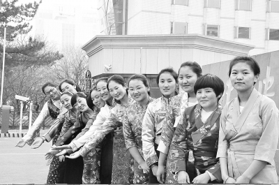 2014年12月,新藏班的学生们在中央民族大学校门口留影。方小梅 摄