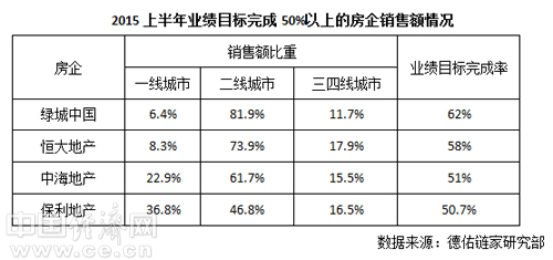 “对于房企来说,上半年销售目标完成的越高,下半年的销售压力越轻,下半年是销售的高峰期,上半年业绩完成在40%以上的房企都有可能会完成全年的任务目标。”陆骑麟说。