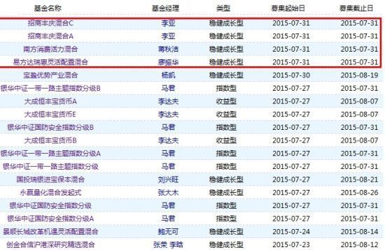 三只新发行的基金分别是:南方消费活力灵活配置发起(最低认购额1000元)、招商丰庆灵活配置发起(最低认购额50万)、易方达瑞惠灵活配置发起(最低认购额5万)。它们有这样三个值得特别关注的地方:都是发起式基金;都将在7月31日发行;都是一天的发行期。