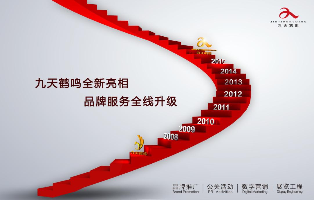 随着构建‘高精尖’产业结构的战略逐步实施,越来越多的企业和品牌从原先的单一传播(Promotion)需求,转型到满足4P(Product、Price、Place、Promotion)的整合营销需求上来。为符合经济战略转型大发展战略与企业日益剧增的整合服务需求,近日,“北京九天鹤鸣文化传播有限公司”对品牌形象与服务范围进行全线升级。如今该公司以品牌推广 、公关活动、数字营销、展览工程四大类为依托,业务范围涵盖了公关服务全线品类。为企业提供多维度的公关服务于一体的解决方案。随着业务范围的全线升级公司新LOGO全面改版,新LOGO化繁为简,继承了公司本身厚重的文化内涵,也更加彰显国际化的活力气息。