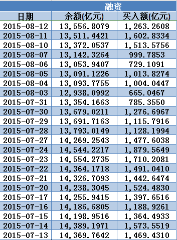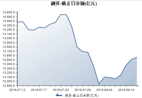 沪深两市融资余额连续增长。8月11日数据显示,两市融资余额为1.3511万亿,环比前一日增长了139.4亿。昨日数据显示,两市融资买入额为1263.26亿元,两市融资余额为1.3557万亿元,环前一日增长46亿元。