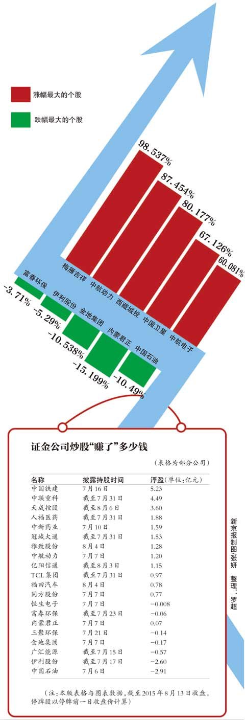 新京报记者统计出来的66家有具体买入时间和买入股数上市公司看,投入金额为460亿元,截至8月13日,实现浮盈超30亿元。
