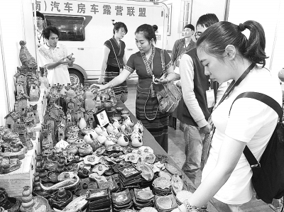 精美的手工技艺引起观展者驻足围观。本报记者 陈恒摄