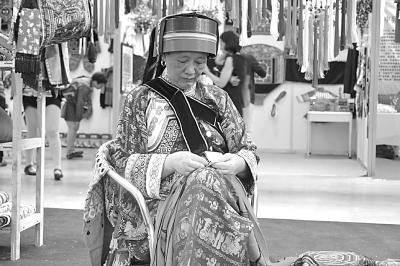 云南文博会上手工艺人正在现场刺绣。本报记者 陈恒摄