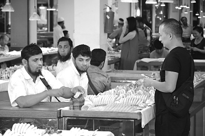 瑞丽玉石市场,内地顾客与缅甸商人进行交流。