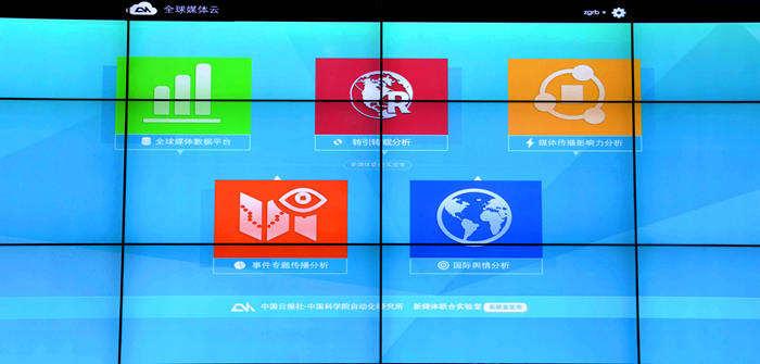 “媒体融合如何能做的更好?”王成孟说,“我们必须要时刻关注全球媒体融合的发展动态和自身‘报网融合’报道的传播效果。”中国日报新媒体实验室是监测媒体融合发展效果的主要平台,实验室基于大数据和云计算技术,构建面向全球的“融媒体”传播研究平台。对新技术形态、媒体传播渠道与趋势、媒体传播效果、新媒体受众行为分析、全媒体舆情预警、媒体数据挖掘技术、新媒体研发运营推广等方向进行跟踪研究。中国日报技术部主任甘永清介绍说:“我们实验室能同时监测全球4000家大型网站,跟踪我们报纸和网站文章在海外的转引率,分析我们的海外社交媒体账号的跟帖情况等。有了实验室的数据支撑,我们可以及时调整融合报道的方向,掌握报道发声的主动权。”