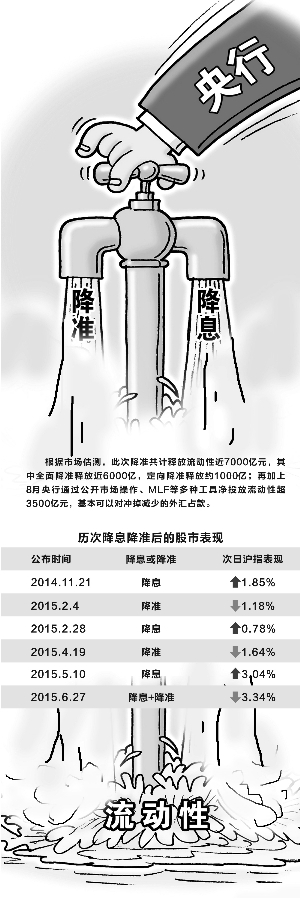 本次降准最根本的意图就是对冲外汇占款的减少,投放基础货币。根据市场估测,此次降准共计释放流动性近7000亿元,其中全面降准释放近6000亿,定向降准释放约1000亿;再加上8月央行通过公开市场操作、MLF等多种工具净投放流动性超3500亿元,基本可以对冲掉减少的外汇占款,并不会释放过多流动性。央行首席经济学家马骏也强调,此次降息降准并不代表货币政策的转向。