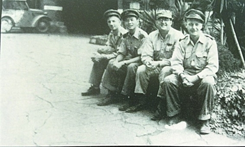 1945年,黎秀石(左二)在东京与同行交换在日本的所见所闻。黎秀煊供图