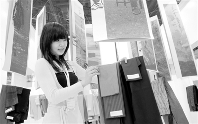 观众在北京举行的中国国际纺织面料及辅料博览会上观看最新的纺织面料样品。本报记者 赵 晶摄