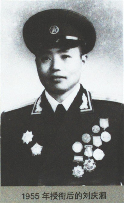 接下来的事,则让刘庆泗“意外”得“喜极而泣”了:我见到树下坐着一位八路军首长(李曼村,1955年授少将衔),着装干净,腰带佩有手枪,给我印象深的是他脚上穿着布条茎草混编的草鞋,前面有个很大的红绣球。他一面扇着扇子一面胸有成竹地对我说:“你跟我们部队走吧。因为天气热,山路难走,和你一起的伤员让老百姓安置。”我态度坚决地回答:“不行。他是我的好朋友,我和他同生死共患难。我的亲哥哥也是八路。”这位首长听后笑着说:“小家伙倒很讲义气。”又问“你哥哥叫什么名字?”我说:“他在家时叫刘庆濂。”他仔细听着我的乡音,端详着我五官遂大声问:“你哥哥是不是也叫刘竹溪?”我忙回答:“是的。”这位首长立即登上坐骑催马加鞭,沿着行军队伍边走边喊:“刘秘书,你的弟弟来了,快来看。”不一会儿,迎面走来一位右背匣子枪左挎皮包,武装整齐、身材挺拔、年轻英俊的八路。我一看,来者真是相别近四年久未联系的亲哥哥。我跑上前去,紧紧抱住他的腰痛哭起来。哥哥却开怀大笑,按着我的双肩说:“真的是你来了。”这是怎样的巧合。原以为天各一方而今就在眼前,似梦如幻,意想不到的兄弟团圆,以后共同奋战七十多年。