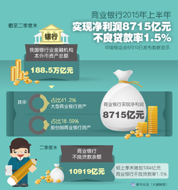 从银监会公布的数据显示,截至今年二季度末,商业银行的不良贷款余额达10919亿元,较上年末增加了2493亿元,逼近2014年全年不良贷款的增量,其中16家上市银行不良贷款增量接近2000亿元;商业银行平均不良贷款率升至1.5%,其中上市银行平均不良贷款率亦超过了1%。