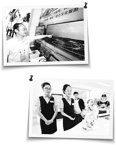 在2015青海文化旅游节上,中国移动运用“互联网+旅游”模式,通过手机APP实现景点直播。图为工作人员在展示通过手机软件连接电视进行景点直播。新华社发